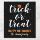 Diese beängstigenden niedlichen Halloween-Weine-Fvor-Labels sind mit "Trick or Treat" in modernem, weißem Drehbuch mit einem orangefarbenen Jack o'lantern Kürbisakzent und schwarzer Hintergrundfarbe ausgestattet. Personalisieren Sie den benutzerdefinierten Text, wie mit Ihrem Familiennamen / Namen oder mit der Art des Weins angezeigt!