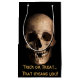 Selbst wenn Kinder zu Halloween nicht mehr von Tür zu Tür gehen, bekommen sie doch immer noch die Taschen voll Süßigkeiten. Von Schulveranstaltungen, lokalen Einzelhändlern, Kirchenveranstaltungen und mehr! Also, warum nehmen Sie nicht eine dieser unheimlichen Taschen, damit die Kinder ihre ganze Beute abholen können. Bild des Schädels mit gotischem "Trick or Treat...Das heißt du!" Goldtext.