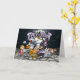 Diese Karte enthält eine Gruppe von Kindern in Kostümen, die bereit sind, zu tricksen oder auf der Vorderseite zu behandeln. Der Text auf der Innenseite kann für den Empfänger dieser Karte angepasst werden.