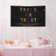 Trick oder gönnen Sie sich bunt leckere Typografie Halloween lustige Halloween Dekorationsbanner. Orange, grüne, lila, weiße, farbige Typografie, schwarzer Hintergrund. Anpassbarer Text und Familienname am unteren Rand des Zeichens.