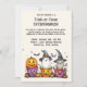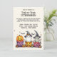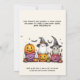Dieses Halloween-Party lädt ein charmantes Design mit drei hübschen Halloween-Figuren in festlicher Umgebung. Das Design zentriert sich um einen freundlichen Geist, der einen spielerischen Hut, einen fröhlichen Kürbis und einen bezaubernden Mumie trägt, die sich glücklich in farbenfrohen Trick-oder-Leckerei-Eimern verstrickt fühlen. Die Eimer sind mit Süßigkeiten und Leckereien gefüllt, was das festliche und spielerische Ambiente der Einladung noch verstärkt. Der Geist mit seinem charmanten Hut schweben leicht über Kürbis und Mumie, die aus ihren Eimern herausgucken. Die Eimer selbst sind hell und farbenfroh, mit lustigen Mustern wie Streifen und Polka-Punkte, die das fröhliche Thema der Einladung verstärken. Der Hintergrund der Einladung ist ein sanfter, pastellfarbener Verlauf, der sanfte Farbtöne kombiniert, die die lebhaften Farben der Buchstaben und Eimer ergänzen. Diese Kulisse schafft eine warme und einladende Atmosphäre, die den spielerischen Charakter des Designs Anzug. An der Spitze der Titelseite steht: "Sie sind zu einem Trick-oder-Leckerei-EXTRAVAGANZA eingeladen!!" Der Text ist kühn und lustig, vor pastellfarbenem Hintergrund stehend und passend zum spielerischen Thema der Einladung. Unterhalb der Beschriftung gibt es Platz für anpassbare Details wie Datum, Uhrzeit und Position des Party, sodass alle notwendigen Informationen einfach hinzugefügt werden können. Die Rückseite der Einladung weist den gleichen pastellfarbenen Hintergrund auf, mit einer subtilen Fortsetzung des lustigen Themas von vorne. Es gibt zusätzlichen Platz für zusätzliche Texte oder Notizen, wo Sie weitere Details oder eine spezielle Nachricht wie "Kostüme sind ein Muss!" oder "Bereiten Sie sich auf eine Nacht mit lustigen Leckereien vor!" hinzufügen können. Dieses Design verbindet bezaubernde Figuren mit einer festlichen Kulisse und eignet sich perfekt für ein fröhliches und unvergessliches Halloween-Fest.