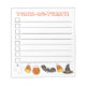 Das Notizblock-Design der Checkliste zeichnet sich durch originelle Illustrationen eines Kürbis, einer Fledermaus, eines Gespenstes, einer Hexenhut und einer Bonbonbonbonbons aus, mit TRICK OR TREAT in einem lustigen orangefarbenen Schriftart. Ideal zu Halloween. Viele zusätzliche illustrierte Notizblöcke sind auch in diesem Shop erhältlich. Dieses Design ist auch auf anderen Produkten erhältlich. Sehen Sie nicht, wonach Sie suchen? Brauchen Sie Hilfe bei der Anpassung? Kontaktieren Sie Rebecca, um etwas für Sie entworfen zu haben.