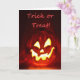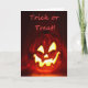Eine Halloween-Karte mit einer beleuchteten Orange schnitzte Kürbis in der Dunkelheit. Dieses macht eine nette Karte für Kinder für diesen Feiertag.