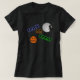 Niedliches Halloween-T-Shirt mit einer Kürbislaterne und einem Hexefliegen hinter dem Mond.