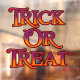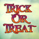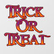 Lebhafte orangefarbene Buchstaben traditioneller Halloween-Gruß "Trick or Treat". Dekorieren Sie Ihre Türe für den Trick, die Pflegekräfte oder für Ihre Halloween-Partys.