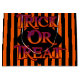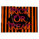 Lebhafte orangefarbene Buchstaben traditioneller Halloween-Gruß "Trick or Treat".