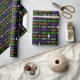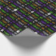 Trick oder Treat Halloween Packpapier mit Gespenstern und Fledermäusen, die Trick- oder Treat-Wörter sind in Orange, Grün oder lila. Dieses Halloween-Muster kann auf dem Packpapier kleiner oder größer gemacht werden.