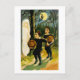 Vintage Halloween Grußkartenabbild, die ein Kind zeigt, das einen Jack o'lantern im Fenster sieht.