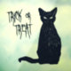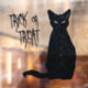NewParkLane - Halloween Window Cling, mit einer Schwarz-Weiß-Silhouette-Illustration einer spukhaften Schwarzkatze, und Text: 'Trick or Treat' in beängstigender Halloween-Typografie. Karo diese Halloween-Kollektion für passende Artikel aus.