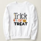 Trick or Treat Halloween Sweatshirt Modernes Familiendesign im Halloween-Shirt-Design mit "Trick or Treat Halloween"-Text in orangefarbenen und weißen Buchstaben mit einem kleinen Geisterakzent. Bestellen Sie für jedes Mitglied Ihrer Crew.