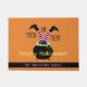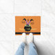 Dieses Halloween-Türmatte hat einen schwarzen Topf mit grüner Hexenbraue, in dem sich die Hexenbeine im Topf befinden. Handgeschriebener Stiltext lautet: Trick oder Treat. Benutzerdefinierter Text, in der Nähe des unteren, ermöglicht es Ihnen, Ihren Familiennamen hinzuzufügen.