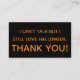 Diese Karte ist für Kinder (oder Erwachsene!) gedacht, die nicht sprechen können, wenn sie trick oder behandeln gehen und gewollt haben, den Leuten zu erklären, warum. Auf der Vorderseite steht "Trick or treat!" und auf der Rückseite steht: "Ich kann nicht reden, aber Halloween habe ich immer noch Liebe. Danke!"