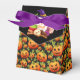 Ein wunderschönes Zelt-Gastgeschenk für Halloween-Spaß Gemustert in geschnitzten Pumpkins und ein Candy Themed Trick oder Treat Lid