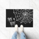 NewParkLane - Schwarz-Weiß Halloween-Türmatte, mit einem 'Trick or Treat' Zitat in spöttischer Halloween-Typografie und einem beängstigenden weißen Spinnennetz, vor einem schwarzen Hintergrund. (Sie können die Hintergrundfarbe in eine beliebige Farbe ändern...) Karo dieser Halloween-Kollektion für passende Objekte. Haben Sie spezielle persönliche Designwünsche? Kontaktieren Sie mich bitte!