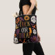 Unser niedliches und stilvolles Halloween-Design ist perfekt zum Trick oder zur Behandlung an Halloween Night. Das Design zeigt unsere eigenen handgezeichnet Blume, Schädel, Fledermäuse, Hexenhut und Katze, die so entworfen wurden, dass sie mit der Typografie "Trick or Treat", die in der Mitte in mehreren halloween einfarbigen Farbpaletten gezeigt wird, ein unterhaltsames Halbbild schaffen. Alle Illustrationen, die in diesem lustigen, stilvollen Halloween-Muster-Trick enthalten sind, oder in der Halle zwischen Thema Tote Tasche sind handgezeichnete Originalkunstwerke von Moodthology.