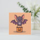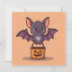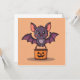 Der niedliche Süßwarensammler. Diese Einladung ist perfekt für kleine Monster und Erwachsene gleichermaßen, mit einer freundlichen Fledermaus und einem lächelnden Kürbispagel. Eine charmante und unterhaltsame Einladung für Halloween-Partys!
