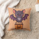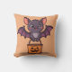 Der niedliche Süßwarensammler. Dieses Kissen eignet sich perfekt für kleine Monster und Erwachsene, mit einer freundlichen Fledermaus und einem lächelnden Kürbispagel. Ein charmantes und lustiges Accessoire für die lustige Saison!