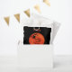 Ein Halloween-Design, das die Worte Trick oder Treat vor einem orangefarbenen Mondhintergrund sieht. Auf dem 'T' von Trick befindet sich ein schwarzer Silhouette einer Hexe, die einen schwarzen Hut mit Spinne trägt. Die Hexe ist von drei (3) Fledermäusen umgeben, die in schwarzer Silhouette fliegen. Die schwarze Silhouette eines Schlafschlägers hängt vom Buchstaben 'k' im Wort Trick. Unter dem Begriff "Leckerei" liegen zwei (2) Lollips und drei (3) Süßigkeiten (Lakaden oder Lollen) in schwarzer Silhouette. Perfekt für die Unheil in uns alle & um die Tradition von Halloween zu feiern. Der Text 'Happy Halloween' erlaubt die Anpassung Ihrer Wahl.