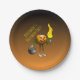 Trick oder Treating Pumpkin mit einem Cauldron gefüllt mit Süßigkeiten auf einem Papierteller. Personalisieren Sie Text.