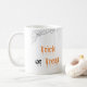 This playful mug features a cute ghost dressed as a witch with a pumpkin bucket — surrounded by bats and spiderwebs for a festive Halloween vibe. Perfect for hot chocolate on trick-or-treat night, pumpkin spice mornings, or as a fun seasonal gift.