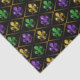 Mardi Gras farbige Imitat-Glitzer-Lilie in lila, grün und gold - über einen schwarzen Hintergrund mit Diamanten. Gewebe Papier, um das Mardi Gras Geschenk perfekt zu machen.