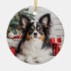 Dieses bezaubernde Weihnachtsschmuck mit einem dreiseitigen Papillon unter einem Weihnachtsbaum ist ein wunderbares Geschenk für jeden Papillon-Liebhaber.