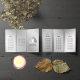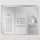 Yoga Studio Meditation Instructor / Life Coach / Healer / Reiki Master / Massage Therapy Tri-Falten Broschüren Vorlage - Moderne elegante Schwarz-weiße und Silver Gray Bodhi Leaf und Yogi in Easy Seat Pose / YOGA Easy Pose / Sukhasana Pose auf Silver Floral Hintergrund. Einfach mit Ihrem eigenen Text und Bildern anpassen - machen Sie es zu Ihrem eigenen.