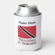 Can cooler hat die Trinidadian und Tobagan Flag mit den Worten TRINIDAD & TOBAGO unter der Flagge. Wörter werden in den Farben Rot, Weiß und Schwarz der Flagge angezeigt. Ein Ort, um einen Namen über der Fahne hinzuzufügen, um für sich selbst oder als Geschenk für einen Reisenden zu personalisieren.