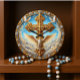 Diese verzierte Wanduhr besticht durch ein strahlendes goldenes Kreuz, das die Heilige Dreifaltigkeit symbolisiert, das Set gegen einen ruhigen Himmel mit Wolken. Zwei Tauben, die Frieden darstellen, flankieren das Kreuz. Die Grenze der Uhr ist faszinierend dekoriert, was zu ihrer Ehrfurcht und künstlerischen Schönheit beiträgt. Ideal, um jedem Raum eine Touch spiritueller Eleganz hinzuzufügen.