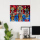 Dieses Poster ist eine Reproduktion des Trinity Stached Glass Window, das für die Zuhause des Bikram Choudhury entworfen und erstellt wurde. Es besteht aus drei Glaspaneelen - Lord Brahma, Lord Vishnu und Lord Shiva.