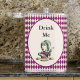 Fügen Sie ein wenig Alice im Wunderland Peitsche mit diesem Mad Hatter "Drink Me" Design. Es enthält den Text "Drink Me" über dem Mad Hatter in magenta und aquamarin in der Mitte umgeben von einem magenta und cremefarbenen harlequin Schachbrett. Dieses Design fügt ein wenig Geschichtenbuch-Launen und Spaß hinzu.
