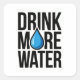 TRINK MEHR WASSER mit einem blauen Tropfen-Symbol Quadratischer Aufkleber