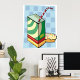 Ein Getränk in einer Schachtel mit Stroh. Dieses Design sieht wirklich effektiv aus auf diesem Poster