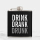Trinken Sie Betrunken getrunken | Black Chic Funny Flask mit der Phrase "Drink Drank Betrunken" im fett gedruckten Schriftart Stil.
