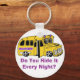 Schlüsselkette mit dem betrunkenen Buslogo und dem Slogan "Reiten Sie es jede Nacht?"