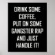 "TROCKNEN SIE EINEN KAFFEE, SETZEN SIE EINEN GANGSTER RAP AUF UND BEHANDELN SIE ES!" von Monkey Business Graphic Design.