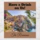Genießen Sie einen Drink auf uns, der fett geschrieben ist und sich über das Etikett der Weinflasche mit einem wunderschönen Bild der Klippenstadt Cinque Terre Manarola verrät. Unter dem Bild ist ein Ort, um Ihren Namen anzupassen (oder jemand anderes, wenn es ein Geschenk ist).