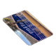Drink KAFFEE schlafen später - In abgenutzten weißen Buchstaben auf einem kobaltblauen Hintergrund gemalt auf einer Ziegelwand, das Schild in der Originalfotografie von ZoeSPEAK auf diesem Magnet sagt alles für Kaffeeliebhaber. Die kleine Boutique mit einer Palme vor dem Haus und einem Strohdach dahinter lädt zum Verweilen bei Sonnenlicht am Nachmittag ein.