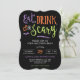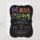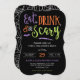 Mit diesem modernen Halloween-Party laden wir Ihre Freunde und Familie zu Ihrem Halloween-Bash im Stil ein! Mit den Worten "Essen, Trinken und Beängstigend sein" in lila, orangefarbener, schwarzer und grüner Farbe. Diese Einladungen sind in einer Klammer-Form die, um eine Touch von Eleganz zu schaffen. Es könnte nicht einfacher sein, die Vorlage an Ihr Party anzupassen!