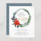 Essen, Trinken und ausgelassen Feiern! Eine moderne, schicke und elegante Party Einladung zum Abendessen. Ideal für Weihnachtsfeiern, Cocktails, Hochzeiten, Firmenveranstaltungen und vieles mehr! Die klassische Serifentypografie wird mit goldenen Schriftzeichen geschmückt, um einen sauberen, zeitgenössischen Look zu erhalten. Der Text wird durch einen Blumenkranz in Aquarellen mit handgemalten grünen Blättern, einer hellroten Poinsettia und Winterbeeren geprägt. Diese Papierblätter kehren in eine aquamarine blaue Farbe mit einem geschmackvollen weißen Diamantmuster um. Als Teil der Budgetauswahl auf Zazzle ist dieses Blatt keine Standard-Einladungsgröße oder Papierqualität. Wenn Sie dieses Design auf einer Einladungskarte gewollt haben, können Sie es in unserem Shop finden oder mit der Zazzle Make Machine auf das Produkt Ihrer Wahl übertragen.