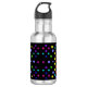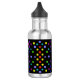 Diese Edelstahl Trinkflasche ist praktisch zum mitnehmen und die bunten Punkte leuchten besonders auf diesem schwarzen Grund.