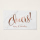Bieten Sie Ihren Gästen mit diesen eleganten Getränkekarten zusätzliche Libationen an. Auf der einen Seite lesen Sie "dieses hier ist auf uns" und "Gut für ein erwachsenes Getränk" und auf der anderen Seite ist "Cheers!" und ein Vorlagenhalter für Ihre Namen. Nicht bearbeitbare Textüberlagerungen werden in einem schönen Kalligraphie-Skript-Schriftart mit Wirbel und Schnörkeln gerendert. Zu diesem Text habe ich einen trendigen Imitat Kupferfolieneffekt hinzugefügt. Andere Texte werden in einem vielseitigen Serif-Schriftart in einer Komplementärfarbe angezeigt; sie können bearbeitet werden, wenn Sie es vorziehen. Der Hintergrund ist ein Bild, das eine subtile Oberfläche aus weißem und grauem Marmor darstellt. Bitte zögern Sie nicht, uns zu kontaktieren, wenn Sie Fragen haben oder Hilfe bei der Anpassung benötigen. // 57 // ein Getränk auf uns haben, gut für ein erwachsenes Getränk, Bar für ein alkoholisches Getränk, Bar für den Hochzeitsempfang, Bar trinken Eintrittskarten für Hochzeitsfeier, elegante Bar Tickettypografie, extravaganter Schriftart, Künstlergetränk-Gutschein, einzigartiges Design, aufwändiger Script-Schriftart, handschriftlicher Schriftart mit Schnörkeln // Muserie.