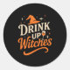 Trinkt Hexen Wein Glas Halloween Junggesellinnenab Runder Aufkleber