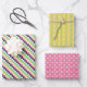 Drei aufeinander abgestimmte geometrische Muster in prächtigen und lebendigen Rosa-, Grün-, Gold-, Tiefseeboot- und Weißtönen. Andere Farben und originelle Designs in dieser Serie zu mischen und zu passen. Schmiedeeisen für schöne Geschenkpackung oder Papierhandwerk. Niedlich und lustig!