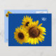 Trio Cut Out Sonnenblumen Foto auf Blue Postkarte