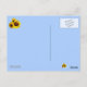 Ein Foto von drei ausgeschnittenen Sonnenblumen auf blauem Hintergrund ist in diesem Artikel enthalten. Kleine Exemplare des Sonnenblumen-Fotos werden an zwei Stellen auf der Rückseite platziert. Das Foto wird auch als Vorlage Set. Das Wort "Hi!" befindet sich in der oberen rechten Ecke und ist auch als Vorlage Set.