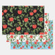 Trio of Tomato Plant Pattern Wrapping Paper Sheets Geschenkpapier Set