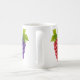 Der weiße Mug weist drei Traubentrauben mit kontrastierten Stilen auf: eine mit glänzender silberner Farbe, intensiver Violine und eine mit Himbeerrot. Die violette, rote, silberne Darstellung bietet eine auffallende und originelle visuelle Wirkung. Grüne Blätter bringen Ausgewogenheit im Design, das auf die Dualität zwischen Mineralglanz und heller Farbe setzt. Ein mutiger ästhetischer Mug, ideal für die Liebhaber moderner und unverwechselbarer Visualisierungen.