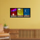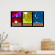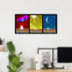 Ein großes Poster mit einer wunderschönen, surrealen Landschaft zu verschiedenen Tageszeiten.