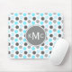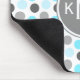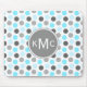 Trendy, chic, mädchenhaft blau und grau polka dot pattern mit anpassbarem Trio von Monogrammen, die Ihren ersten, letzten und mittleren Namen darstellen. Ein cooles, modernes, geometrisches mit Monogramm Geschenk für sie.